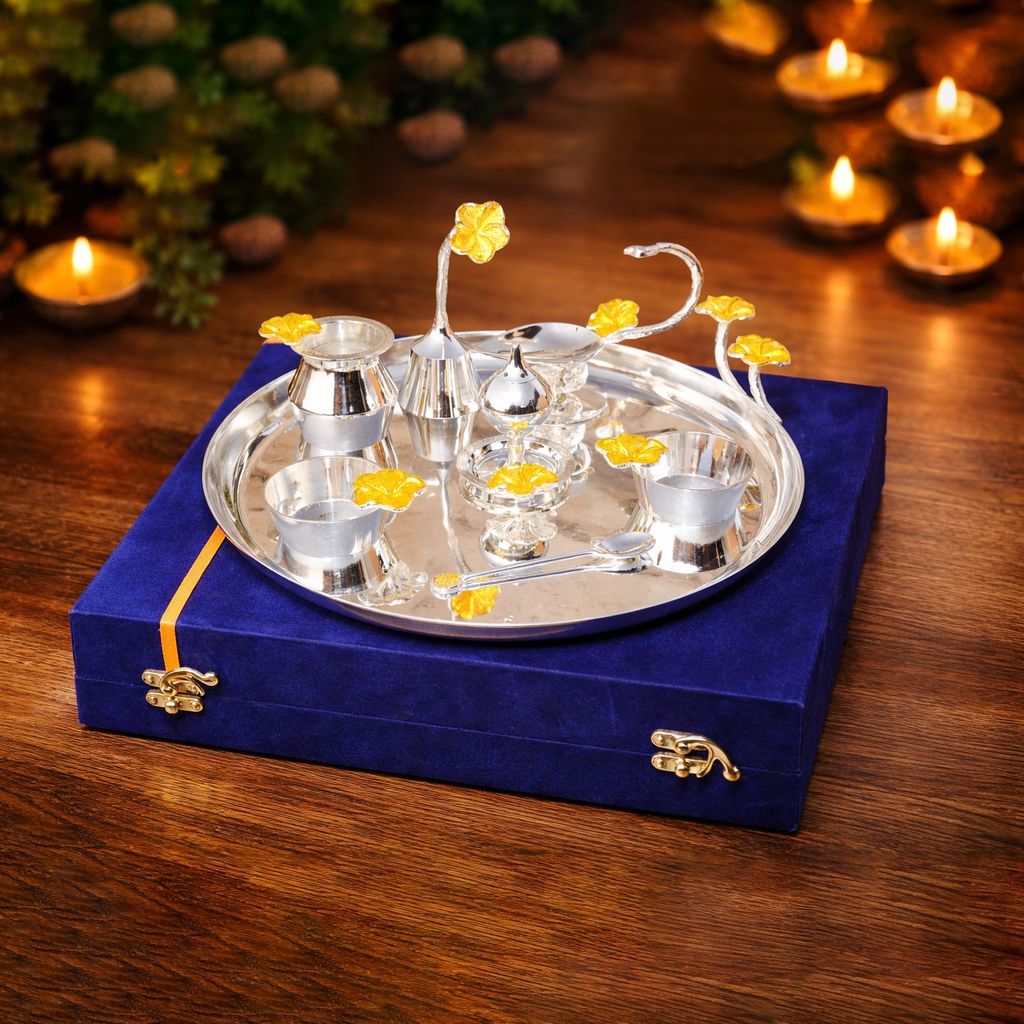 +917351007433 https://www.brassgiftonline.com/s/5fa28c32f990d2c26c566c66/5fbf7a310348f35edc571cf1/logo-final-480x480.jpg" [email protected] 652159a0d2fb5424658bd33b Brass and Steel Puja Thali Set With Valvet Box (B298 D) https://www.brassgiftonline.com/s/5fa28c32f990d2c26c566c66/69bae06774d09c98b88f17c3/b298-d.jpg | Item Name | Length(Inch) | Width(Inch) | Heigth(Inch) | Weigth(Kg) |