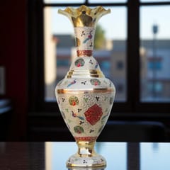 This vase is made of high quality brass by our trained craftsman. This vase is than worked upon by our artisian to give it multicolur unique look. Its complete hand crafted item made by trained indian craftsman. This can be used for decoration purpose and can be used to hold cut flowers.