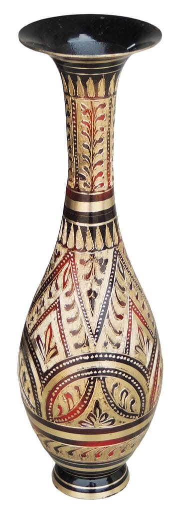 This vase is made of high quality brass by our trained craftsman. This vase is than worked upon by our artisian to give it multicolur unique look. Its complete hand crafted item made by trained indian craftsman. This can be used for decoration purpose and can be used to hold cut flowers.