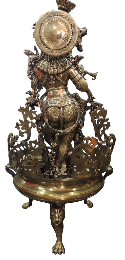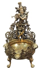 This Krishna Urli is made of brass and comes in Anitque brass color. You can use this urli for filling it with water and then dropping some fragrant flowers into it that will create a sweet fragrance. Best for home decor and gifts to your dear ones.