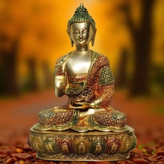 The Buddhism Idol Lord Buddha is most popular deity who is known for his wisdom & enlightenment or awakening powerful abilities. This Blessing Buddha Small Idol Sculpture is Ideal for any home decor or Fengshui decor art. Bring the consciousness of the god Buddha along with the blessings with this little brass statue. This Buddha Idol is made with the finest quality of brass