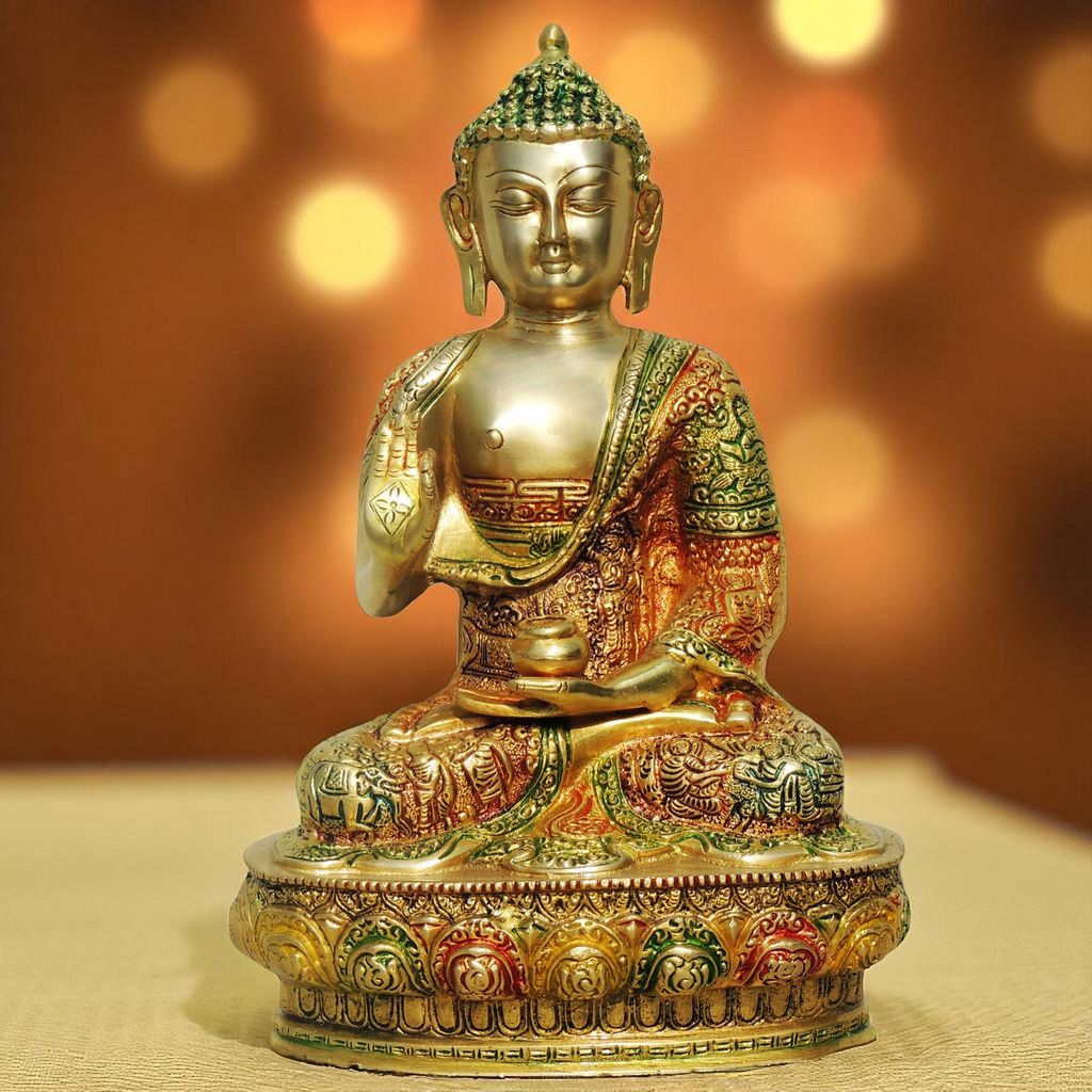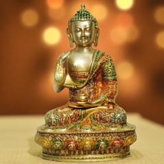 The Buddhism Idol Lord Buddha is most popular deity who is known for his wisdom & enlightenment or awakening powerful abilities. This Blessing Buddha Small Idol Sculpture is Ideal for any home decor or Fengshui decor art. Bring the consciousness of the god Buddha along with the blessings with this little brass statue. This Buddha Idol is made with the finest quality of brass