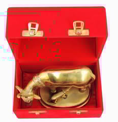 This Cow & Calf Statue Is Made up of Pure Brass Metal. Kamdhenu cow along with its calf signifies love & prosperity and is considered highly auspicious for countering the vastu doshas (architectural faults) & enhancing the overall good luck.It is believed that each part of the Kamdhenu cow embodies a particular deity. It is also believed that as Kalpa-vriksha, (heavenly tree) Kamadhenu, in the same way, fulfills the desires of those who approach it with devotion. Ideal to keep in home or gift on new house warming, birthday anniversary occasion. This unique piece also has auspicious Hindu symbols of Om & Swastika. Memorable handmade decor statue.