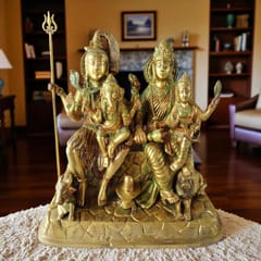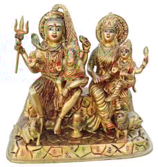 This is a beautiful, unique & gorgeous handwork on solid metal figure of Shiv Parvati Ji .Bless your place and heighten the beauty and spirituality of your house or work place with this Handmade God Ganesha Sculpture. Ganesha is the remover of obstacles, the deity whom worshipers first acknowledge when they visit a temple. He is worshipped for success (siddhi) in undertakings and intelligence (buddhi). He is worshipped before any venture is started. He is also the God of education, knowledge and wisdom, literature, and fine arts. Ganesha is the legendary scribe who, using his broken tusk, which he often holds, wrote down parts of the Mahabharata epic. This Handmade Gods Sculpture is fully artisan crafted in India, making it a truly authentic figurine. This Handmade God Shiv Parvati Ji Sara Swati Sculpture is designed in metal using sand casting technique and has a golden color to it. Place this calm art piece in your living room for an effervescence beauty or gift it to your loved ones before he/she enters a new phase in life.